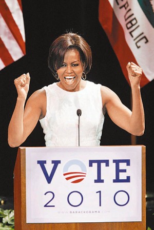 中新網(wǎng)11月1日電 據(jù)香港《文匯報(bào)》網(wǎng)站報(bào)道,美國中期選舉11月2日舉行,被視為民主黨秘密武器的美國第一夫人米歇爾.奧巴馬也盡最后努力拉票。她連日穿梭美國西岸各個(gè)州,以“慈母”形象為不同候選人站臺(tái),很受選民歡迎。政治分析家認(rèn)為,米歇爾的親和形象,有助于推動(dòng)未定投票取向的選民為民主黨投票。