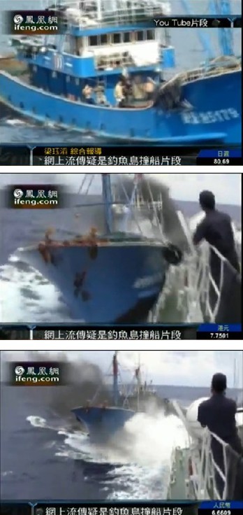 這些視頻片長由兩分半鐘至11分半鐘,可以清晰看到船身寫有“閩晉漁5179”的中國漁船和日本艦艇發(fā)生碰撞后冒出黑煙的情況。海上保安廳干部認(rèn)為這是“真實(shí)的錄像”。