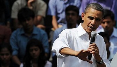 奧巴馬在訪問(wèn)孟買的第2天,與孟買圣澤維爾學(xué)院(St. Xavier College)學(xué)生對(duì)話。他向?qū)W生們解釋,美國(guó)正積極與巴基斯坦合作,打擊伊斯蘭激進(jìn)份子,但進(jìn)展速度未如美國(guó)預(yù)期。