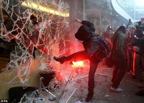 行為過激的好斗分子將一些參加示威游行的學(xué)生帶入瘋狂失控狀態(tài)。他們襲擊警察,并破壞了保守黨總部所在的大樓。