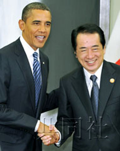 中新網(wǎng)11月13日電 據(jù)日本共同社13日報道,日本首相菅直人13日上午在橫濱與來日參加亞太經(jīng)合組織(APEC)峰會的美國總統(tǒng)奧巴馬舉行會談。兩國首腦就進一步“深化”同盟關系達成一致。會談結(jié)束后,奧巴馬向記者表示,美國將“毫不動搖”地堅持保衛(wèi)日本這一決心。