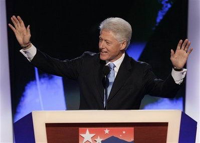 在此前民主黨總統(tǒng)候選人初選時,克林頓大力支持希拉里。在6月奧巴馬獲勝之前,克林頓從未對奧巴馬表示“大力支持”。在周三,他已經(jīng)毫無含糊的將引領(lǐng)民主黨的火把傳到了奧巴馬手中?肆诸D說:“我們希望你們之前所有支持希拉里的人都能為奧巴馬投票!彪m然演講僅20多分鐘,但是這位民主黨教父將在會代表帶入了狂熱的氣氛中。