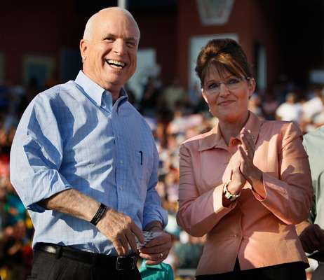 美國(guó)共和黨總統(tǒng)候選人麥凱恩與競(jìng)選搭檔佩林。