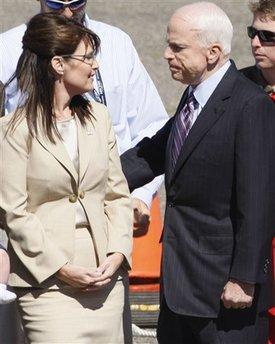 當(dāng)?shù)貢r(shí)間3日,麥凱恩在雙子城與競(jìng)選搭檔佩林見面。
