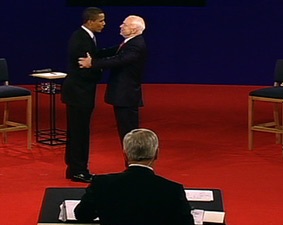 奧巴馬與麥凱恩均表示有信心贏得這場辯論,并握手示意。經(jīng)濟(jì)問題將再次成為此次辯論的焦點。