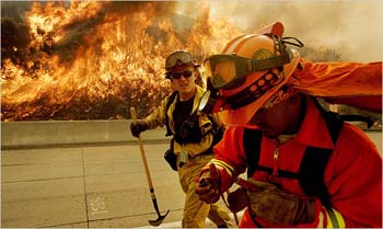 從圣巴巴拉(Santa Barbara)往東南方延燒到洛杉磯的大火,吞噬約8900公頃土地,當(dāng)局下達(dá)至少5萬次遷徙令。