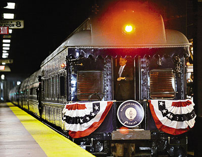 奧巴馬昨天在費城的第30街火車站登車,開始他向西南面華盛頓進發(fā)的旅程。與林肯不同,因為后者當(dāng)年由家鄉(xiāng)伊利諾伊州出發(fā),需時長得多。奧巴馬在出發(fā)前的演說中表示,國民要締造新“獨立宣言”,從偏狹的意識形態(tài)中團結(jié),又指國家正面對史無前例的挑戰(zhàn)。