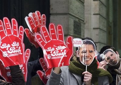 奧巴馬18日在林肯紀(jì)念堂五十萬人出席的音樂會(huì)上,感謝出席人潮擁抱寒冷。音樂會(huì)開場(chǎng)兩小時(shí)后,奧巴馬與未來的第一夫人米歇爾出現(xiàn)在林肯紀(jì)念堂前,現(xiàn)場(chǎng)頓時(shí)沸騰。從林肯紀(jì)念堂到反思池,再到一公里外的華盛頓紀(jì)念方碑,人們一邊歡呼,一邊試圖用相機(jī)記錄下這歷史性的一刻。