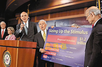 刺激經(jīng)濟(jì)方案上周在眾議院表決時(shí),竟然得不到任何一位共和黨議員支持,對尋求打破黨派藩籬的奧巴馬而言是沉重打擊。以目前參院的勢力分布,民主黨若拉攏不到任何共和黨議員倒戈,共和黨便可采取阻延策略阻撓方案。