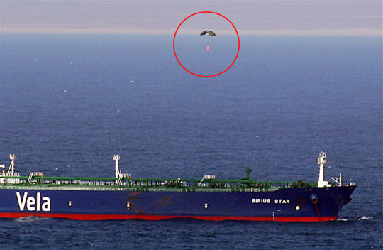 2008年11月15日,索馬里海盜劫持了沙特超大油輪“天狼星號”,并扣押23名不同國籍的船員作為人質(zhì),勒索的贖金達(dá)到350萬美元。無奈之下,“天狼星號”用直升飛機于2009年1月9日傘降贖金,這一幕也被美國海軍拍了下來。據(jù)一些媒體報道,后來海盜因為分贓不均發(fā)生爭執(zhí),造成乘坐的小船傾覆,多人死亡。為了一探事情的究竟,CNN聯(lián)系了一名生還的海盜。