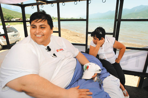 中新網(wǎng)8月12日電 綜合報道,重達310公斤的墨西哥超級胖子烏里韋10日在女友陪伴下,搭乘特制拖拉貨車,到蒙特雷一座湖邊賞景。