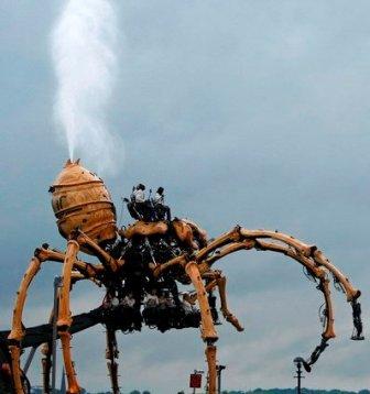 據(jù)悉,這只巨蛛由法國(guó)藝術(shù)家策劃并耗時(shí)18個(gè)月在法國(guó)制作,最后在英國(guó)某地秘密組裝而成。這只機(jī)械蜘蛛通過(guò)多人控制,每個(gè)腳都有著細(xì)膩的機(jī)械表現(xiàn),甚至可以輕柔到用腳和你的雨傘打招呼,它每小時(shí)可以爬行3.2公里(2英里)。 行人紛紛駐足觀看這一“自由劇場(chǎng)”秀。