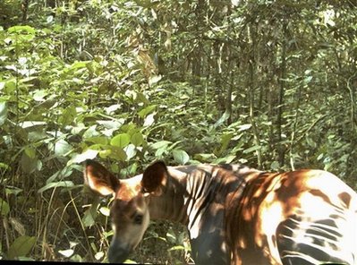 中新網(wǎng)9月12日電 綜合報道,倫敦動物學會11日發(fā)布了在非洲剛果國家公園叢林內裝設的隱藏相機首度拍攝到的額頭中央突起類似獨角的非洲鹿(okapi)照片,具有鹿和長頸鹿的特征,紋路卻像斑馬。