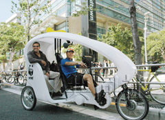 中新網(wǎng)9月14日電 最近東京街頭出現(xiàn)了一種速度快于步行,但又比自行車稍慢的德國產(chǎn)三輪出租車“Velotaxi”。據(jù)日本共同社報(bào)道,乘坐這種出租車可以通過從未體驗(yàn)過的行駛速度瀏覽東京街景,很受外國游客的歡迎。