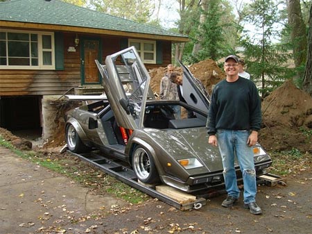 據(jù)俄羅斯新聞網(wǎng)報道,這名美國人在自家地下室,用時17年手工打造出自己的超級蘭博基尼跑車。但如何從地下室脫出跑車又成一問題,為此Imhoff不惜墻倒屋塌,專門找來掘土機在自己房屋下開出一個大洞,成功將跑車拉出來。在這個過程中,他唯一擔心的是砸下了的石頭會否砸壞他的愛車。