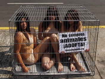 中新網(wǎng)1月4日電 綜合報(bào)道,1月3日,墨西哥城3名動(dòng)物權(quán)益組織成員坐在一個(gè)籠子中,對(duì)買(mǎi)賣(mài)寵物的行為表示抗議。他們希望以這種形式喚起人們的注意,呼吁人們不要販賣(mài)寵物。