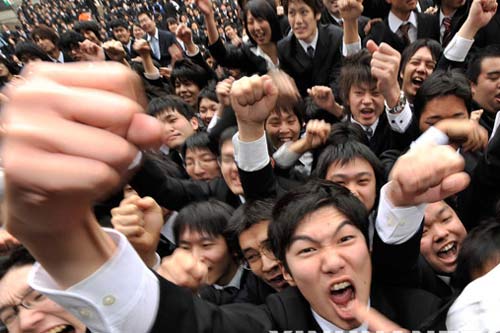 2月5日,在日本東京舉行的一個(gè)求職者集會(huì)上,大學(xué)生們振臂高呼,互相鼓勵(lì)并為自己加油。