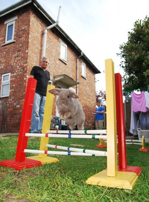 中新網(wǎng)5月4日電 對(duì)于一般人家的兔寶寶來說,每天最愜意的事莫過于睡睡懶覺或是啃啃胡蘿卜;然而英國哈斯拉姆家六只寵物兔的生活卻不落俗套,據(jù)英國《每日郵報(bào)》1日的報(bào)道,在主人的指導(dǎo)下,這六只小兔每天都要接受“跨欄”訓(xùn)練,它們還滿懷信心的要去參加寵物比賽。