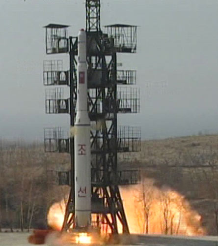 中新網(wǎng)4月8日電 綜合媒體報(bào)道,朝鮮5日宣布利用“銀河二號(hào)”運(yùn)載火箭于當(dāng)天上午11時(shí)20分(北京時(shí)間5日上午10時(shí)20分)在咸鏡北道花臺(tái)郡東海衛(wèi)星發(fā)射基地發(fā)射,并于9分2秒后的11時(shí)29分2秒(北京時(shí)間5日上午10時(shí)29分2秒)將“光明星二號(hào)”衛(wèi)星送入軌道。雖然美日韓等多國(guó)官員堅(jiān)稱(chēng)并無(wú)朝鮮衛(wèi)星進(jìn)入太空,但朝鮮7日稱(chēng)其周日發(fā)射的衛(wèi)星已進(jìn)入軌道,并播放革命歌曲,還在7日公布了火箭發(fā)射的錄像。