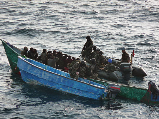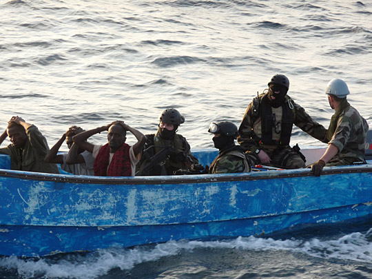 據(jù)一位法國(guó)海軍發(fā)言人稱,他們自去年4月份以來已經(jīng)抓獲了57名海盜。亞丁灣索馬里海盜劫持事件在2008年激增11%。海盜問題日趨嚴(yán)重,促使多國(guó)派出海軍展開護(hù)航和聯(lián)合打擊海盜任務(wù)。