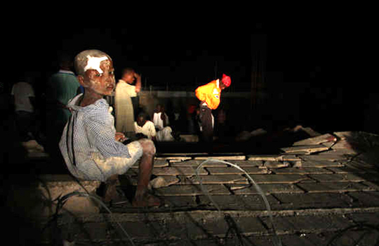 英國(guó)廣播公司記者走訪了一家醫(yī)院,他看見約一百具遺體躺在地上,災(zāi)民們就睡在尸體旁邊。