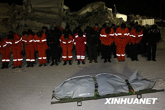 目前,救援隊(duì)正按照孟建柱的要求,爭分奪秒,竭盡全力搜救中國被埋人員。最新消息稱,中國國際救援隊(duì)已于海地當(dāng)?shù)貢r間16日凌晨3時30分發(fā)現(xiàn)第一具中方失蹤人員遺體,F(xiàn)場人員對這名遇難中國人舉行了默哀儀式。對其他幾名中國維和人員的搜救工作仍在進(jìn)行中。