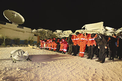 中國(guó)國(guó)際救援隊(duì)隊(duì)員于海地時(shí)間14日凌晨抵達(dá)聯(lián)海團(tuán)總部大樓營(yíng)救現(xiàn)場(chǎng)后,已夜以繼日地奮戰(zhàn)了幾十小時(shí)。