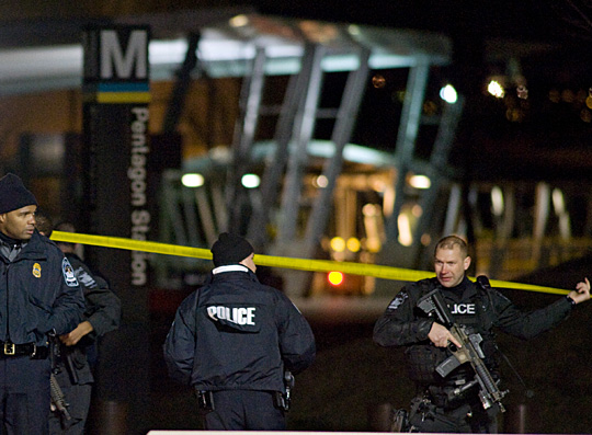 五角大樓4日晚上6時40分左右發(fā)生一起槍案,槍手徑直走向靠近地鐵站的五角大樓入口。當守在那里的警員要求他出示證件時,槍手未發(fā)一言、面無表情地從自己的大衣口袋里掏出手槍開始射擊。五角大樓的警員隨即予以還擊,使其重傷。美國軍方隨即關閉了五角大樓。(完)