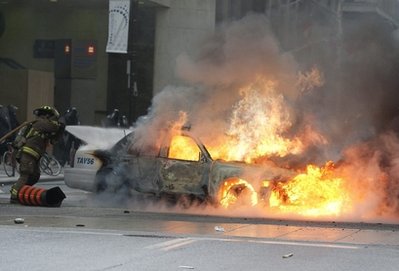 據(jù)悉,約2000名示威者前日在多倫多街頭游行,有示威者與防暴警察沖突,2人被捕!(jù)電視臺記者稱,示威者向警察投擲物件。一輛警車被焚毀。示威組織者說,將有5000到1萬人參加峰會期間的示威和抗議活動。