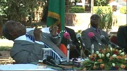 據法新社報道,贊比亞總統(tǒng)魯皮亞-班達25日在總統(tǒng)府外舉行的一個新聞發(fā)布會上向記者發(fā)表講話時,一只猴子撒尿在他身上。