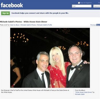 報(bào)道表示,薩拉希夫婦二人在宴會(huì)上落落大方,毫不心虛,他們先后與美國(guó)副總統(tǒng)拜登、白宮幕僚長(zhǎng)、海軍陸戰(zhàn)隊(duì)高官、美國(guó)哥倫比亞電視臺(tái)知名主播以及美國(guó)廣播公司電視臺(tái)主持人親密合影。在一張照片中,副總統(tǒng)拜登還挽著薩拉希夫人的手。薩拉希夫婦事后將照片放上社交網(wǎng)站Facebook大肆炫耀,令白宮顏面無(wú)存。