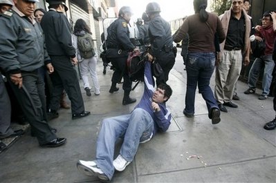 中新網(wǎng)6月12日電 據(jù)美聯(lián)社等媒體報道,秘魯約2萬民眾當(dāng)?shù)貢r間11日在國會大廈前游行,警方施放催淚瓦斯將民眾驅(qū)散。