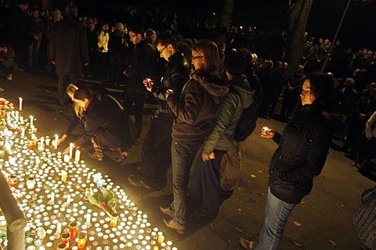 據學校同學和老師介紹,做案人名叫阿科什,性格內向封閉、不愛與他人交往、經常行為怪異、情緒易激動,可能患有精神疾病。事發(fā)時,阿科什與其它20名同學一起在實驗室做試驗,由于他莫明其妙地說話和敲打桌子,人們讓他離開。阿科什一言不發(fā)起身走開,但稍后回來時持著一把手槍,并朝室內開槍射擊。他使用的是一把子彈直徑為9毫米的原捷克斯洛伐克產帕拉貝倫手槍,遇害的同學身中五槍當場死亡。阿科什2007年開始學習射擊,擁有持槍許可證,為佩奇射擊俱樂部會員,但他此次行兇的原因仍在調查中。