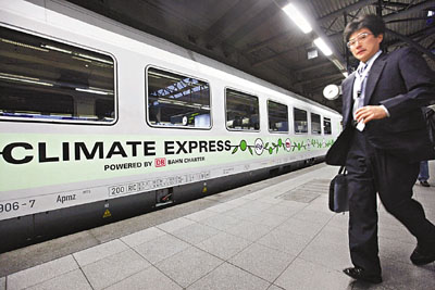 “氣候快車”當(dāng)天上午由比利時(shí)首都布魯塞爾出發(fā),沿途停留德國科隆和漢堡,然后進(jìn)入丹麥,全程約800公里。為減少列車溫室氣體排放,負(fù)責(zé)的德國鐵路公司事先計(jì)算出旅程所需電力總量,并從提供可再生能源的企業(yè)購入相應(yīng)電能。