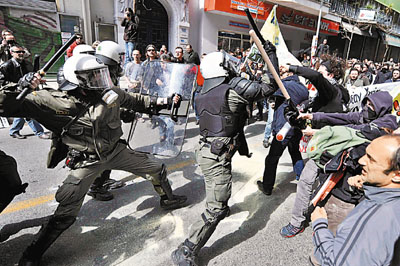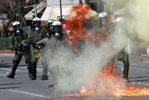 其中在雅典中部有三萬(wàn)多人示威,于國(guó)會(huì)大樓外等多處地方,示威者向防暴警察投擲石塊和汽油彈,放火燒車(chē)和垃圾桶,又破壞銀行、珠寶店、戲院等10多間商店,警方發(fā)射催淚彈和手榴彈驅(qū)散人群。