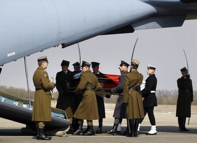 據(jù)俄羅斯媒體報(bào)道,運(yùn)載波蘭總統(tǒng)遺體的波蘭空軍運(yùn)輸機(jī)從斯摩棱斯克啟程前往華沙?J斯基夫人瑪麗亞的遺體稍后也將運(yùn)往華沙。