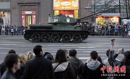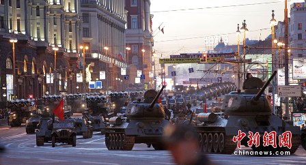 據(jù)報道,27日,俄羅斯出動約159輛軍用車輛及1萬多名軍人,進(jìn)行了關(guān)于今年5月9日俄羅斯衛(wèi)國戰(zhàn)爭“勝利日”65周年時,紅場閱兵儀式的彩排活動。此次閱兵分為兩部分:歷史部分和現(xiàn)代部分。歷史部分由身穿衛(wèi)國戰(zhàn)爭時期軍服的士兵游行,同時還會有9輛T-34坦克和8輛SU-100自行火炮進(jìn)行在游行隊伍當(dāng)中,F(xiàn)代部分則由13輛老虎裝甲車、BTR-80裝甲車、BMP-3步兵戰(zhàn)車、T-90A坦克和S-400防空系統(tǒng)等組成。