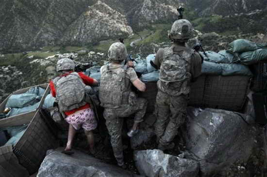美聯(lián)社的一名攝影記者抓拍的一張照片顯示,19歲的陸軍專業(yè)軍士扎查里伊-波伊德在位于阿富汗庫納爾省科里加爾山谷的雷斯特雷波火力基地內(nèi)進(jìn)入防御陣地,基地當(dāng)時(shí)遭到了塔利班的火力射擊。他當(dāng)時(shí)穿著一件四角內(nèi)褲,內(nèi)褲上印著彩紅色的“我愛紐約”字樣!都~約時(shí)報(bào)》12日在其頭版刊登了這張照片。