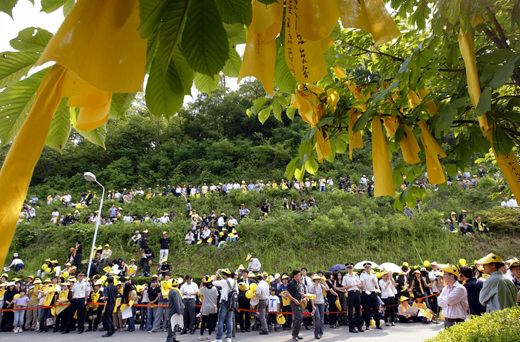 中新網(wǎng)5月29日電 據(jù)韓國(guó)《朝鮮日?qǐng)?bào)》報(bào)道,當(dāng)?shù)貢r(shí)間29日下午6時(shí)8分(北京時(shí)間下午5時(shí)8分),韓國(guó)前總統(tǒng)盧武鉉的靈車來到位于水原的“蓮花場(chǎng)”(音譯)火化場(chǎng),F(xiàn)場(chǎng)已被象征盧武鉉的黃色帶子“覆蓋”,700多名警察部署在火化場(chǎng),嚴(yán)格控制一般人出入。