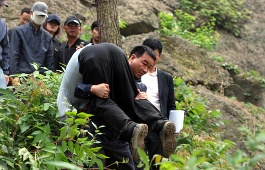 當(dāng)李某走到盧武鉉跳崖的落地點(diǎn)貓頭鷹巖下方時(shí),他哭出了聲。李某跌坐在地,半天沒有回過神來。遺屬方面代表、前青瓦臺(tái)秘書室長(zhǎng)文在寅在現(xiàn)場(chǎng)向李某等人詳細(xì)地詢問了發(fā)現(xiàn)盧武鉉的經(jīng)過。