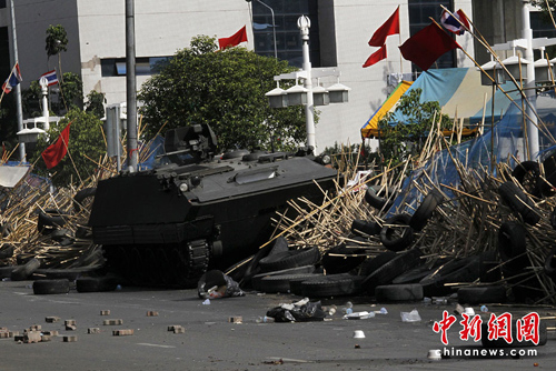 中新網(wǎng)5月19日電 據(jù)外電報(bào)道,19日泰國(guó)軍方對(duì)聚集在首都曼谷市示威的反政府“紅衫軍”展開(kāi)了驅(qū)散行動(dòng),據(jù)信軍方裝甲車(chē)已突破“紅衫軍”所筑路障,且至少有3人被槍擊中。
