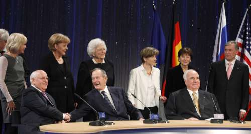 紀念活動主辦方贊揚老布什與戈爾巴喬夫分任美蘇領袖時,對拆除柏林墻及促成兩德統(tǒng)一的貢獻,還贊揚德國前總理科爾“抓住關鍵的一刻”,促成德國統(tǒng)一。