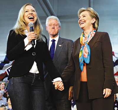 報(bào)道指,切爾西將與31歲投資銀行家男友梅茲文斯基,在麻省馬撒葡萄園島結(jié)束多年愛情長(zhǎng)跑。上周中,克林頓被發(fā)現(xiàn)在商店選購(gòu)禮物,更有傳國(guó)務(wù)卿希拉里的專用發(fā)型師已到島上,不過希拉里否認(rèn)傳言,克林頓發(fā)言人上周初更以1000美元作賭注,堅(jiān)稱切爾西暫不會(huì)出嫁。