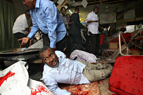 爆炸發(fā)生在摩加迪沙當(dāng)?shù)赜忻摹吧衬频辍保黢R里貝納迪爾大學(xué)計(jì)算機(jī)和工程系的學(xué)生正在酒店新裝修過(guò)的舞廳里舉行畢業(yè)典禮,不料儀式進(jìn)行到一半時(shí)現(xiàn)場(chǎng)發(fā)生劇烈的爆炸。據(jù)悉,雖然只有43名大學(xué)生當(dāng)天畢業(yè),但邀請(qǐng)的賓客很多,多名索過(guò)渡政府要員參加了典禮。