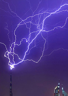 照片的拍攝者是一位23歲名叫穆罕默德·哈姆丹的學生,來自巴基斯坦,目前在阿聯(lián)酋攻讀建筑工程學。當時,迪拜正遭受暴風雨的襲擊。雷電中,高達828米的哈利法塔在紫色的天空映襯下輪廓清晰。這樣的場面深深吸引了穆罕默德,他隨即拿出相機,對準哈利法塔連拍數(shù)張照片,這時,一道閃電正好擊中哈利法塔樓頂。