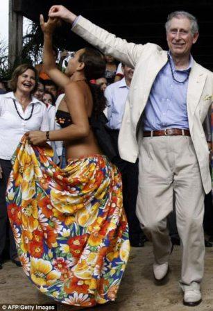 查爾斯先與巴西帕拉州州長(zhǎng)安娜一起共舞,接著又與一名上身穿著比基尼、下穿花色長(zhǎng)裙的20歲年輕女孩跳起了熱辣的桑巴舞。在圍觀者的歡呼聲中,查爾斯與這位性感女郎跳了兩分鐘的桑巴舞。