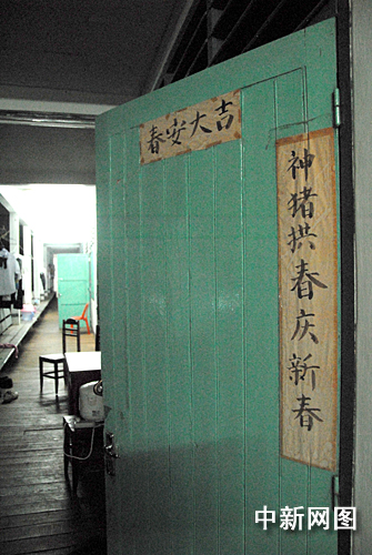 留學生宿舍門上已經褪色的春聯(lián)
