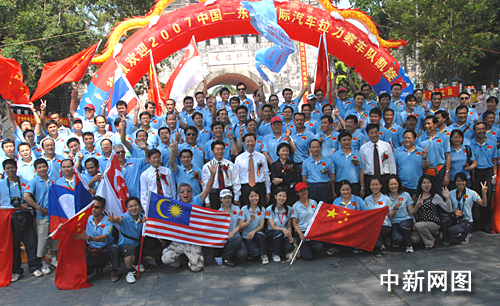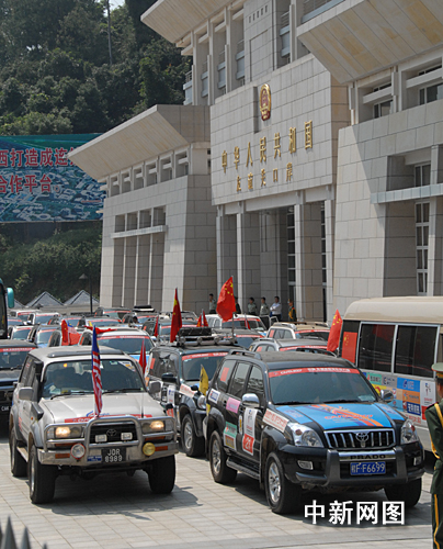 中新網(wǎng)10月21日廣西寧明電(王紅綱)20日中午11時(shí),2007中國(guó)-東盟國(guó)際拉力賽車(chē)隊(duì)從中國(guó)廣西憑祥的友誼關(guān)入境,順利返回中國(guó)。廣西區(qū)人民政府副主席,本次拉力賽組委會(huì)主任劉新文等領(lǐng)導(dǎo)同志在關(guān)口迎接車(chē)隊(duì)的到來(lái),當(dāng)日中午,廣西體育局及崇左市人民政府在友誼關(guān)口為車(chē)隊(duì)舉行了簡(jiǎn)單而隆重的凱旋迎接儀式。廣西自治區(qū)主席陸冰特意發(fā)來(lái)賀電向汽車(chē)?yán)悈①愡x手和工作人員表示熱烈的祝賀和親切的慰問(wèn)。