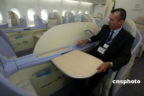 10月26日,參觀空中客車(chē)A380飛機(jī)的北京民眾被其豪華舒適的客艙所吸引。當(dāng)日,一架生產(chǎn)編號(hào)為007的空中客車(chē)A380客機(jī)?吭诒本┦锥紘(guó)際機(jī)場(chǎng)N104機(jī)位,接待北京媒體及部分嘉賓的參觀。此次A380中國(guó)大陸之行為期一周,包括廣州、上海及北京三個(gè)城市,這是A380飛機(jī)2007年環(huán)球飛行之旅的重要部分。中新社發(fā) 楊影懿 攝