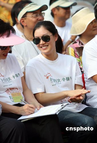 很少在香港公開場合露面的伏明霞,二十七日陪同丈夫梁錦松參加維園舉行的小母牛[競步善行]社會各界同心助國內(nèi)農(nóng)民脫貧慈善賽活動(dòng)。